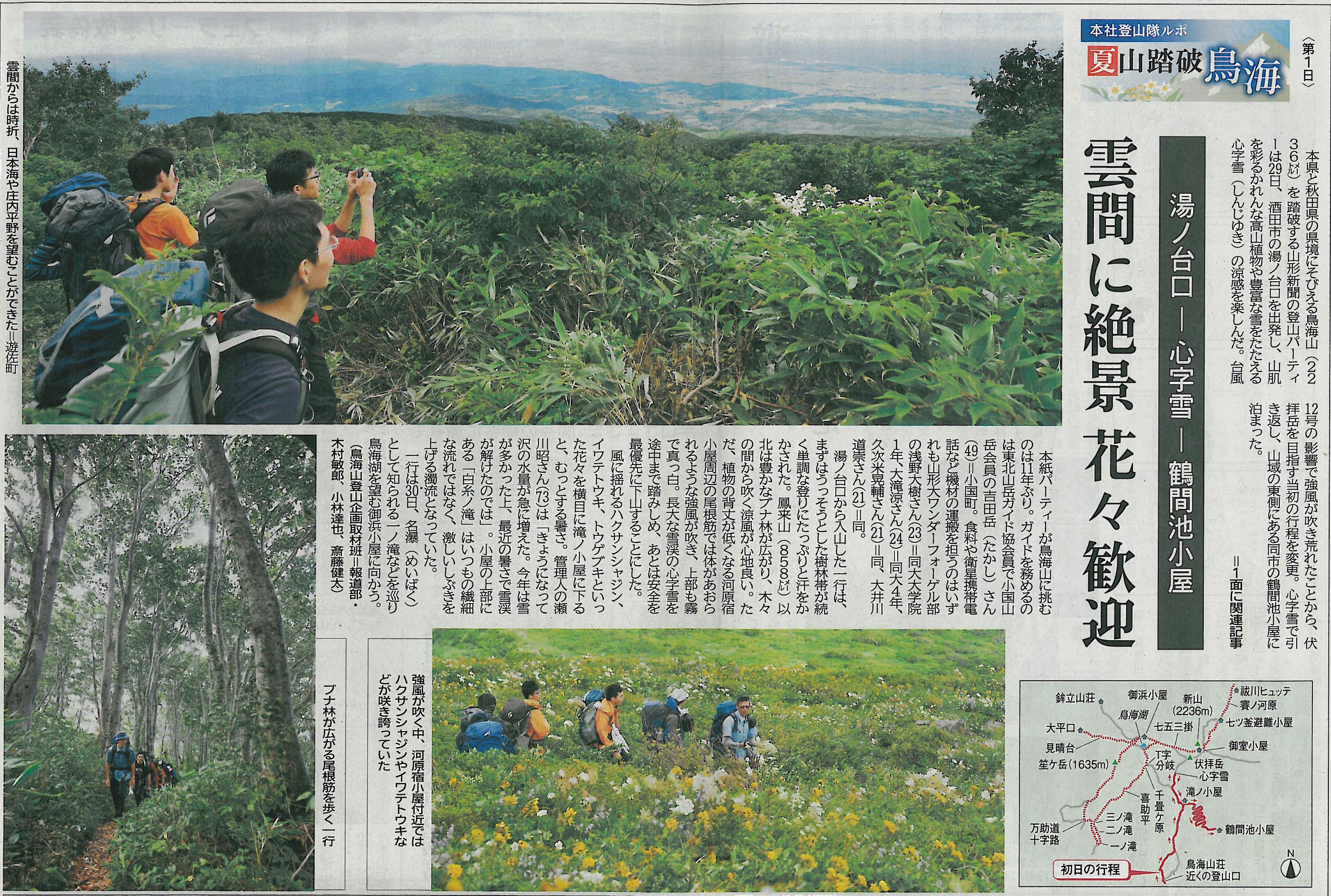 2018.8.1 山形新聞朝刊に鳥海山夏山登山(夏山踏破鳥海:第3日目)の記事が掲載されました。
