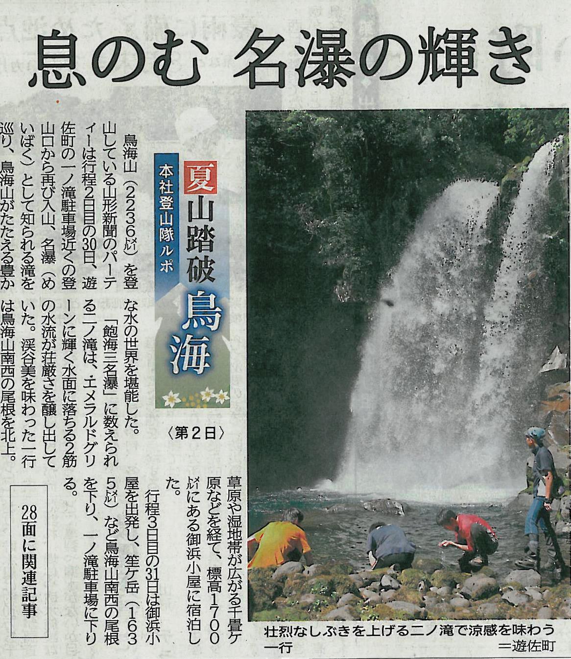 2018.7.30 山形新聞朝刊に鳥海山夏山登山(夏山踏破鳥海:第1日目)の記事が掲載されました。